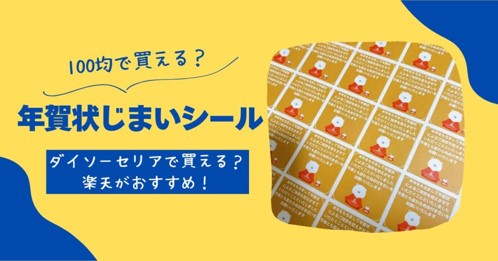 年賀状じまいシールは、100均では取り扱いがありませんでした。 100均大手4社の、「ダイソー」「セリア」「キャンドゥ」「ワッツ」の商品を調べましたが、どこも取り扱いがありませんでした。 しかし、年賀状じまいシールはネット販売でも意外とリーズナブ... 文具・事務用品ネジ穴潰れた補修は100均ダイソーセリアキャンドゥで買える?パテも調査
