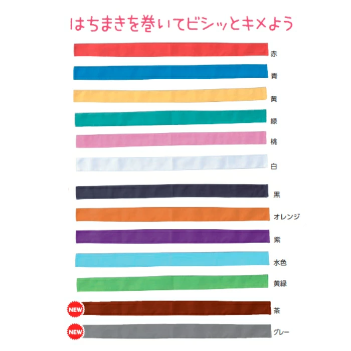 コットン はちまき | 4.85(101件) | 約110cm×4cm | コットン100%・全15色展開(赤白リバーシブルあり) | 135円 | 275円 |