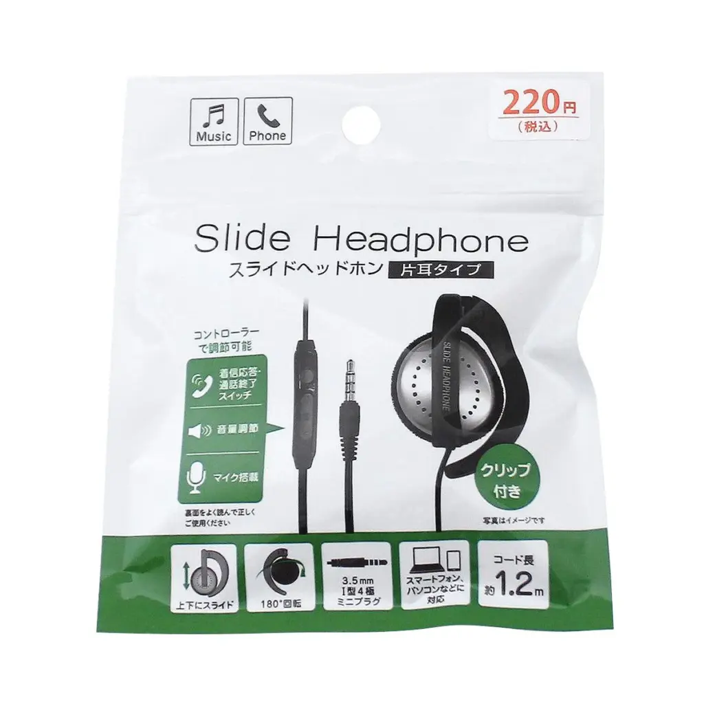 | ワッツ | ・耳掛け式ステレオヘッドホン ・コード長約1.2m ・通話/音楽操作可能 ・スライド調整式あり | 220円~330円 | 店舗で要確認 | ・耳にフィットしやすく快適 |