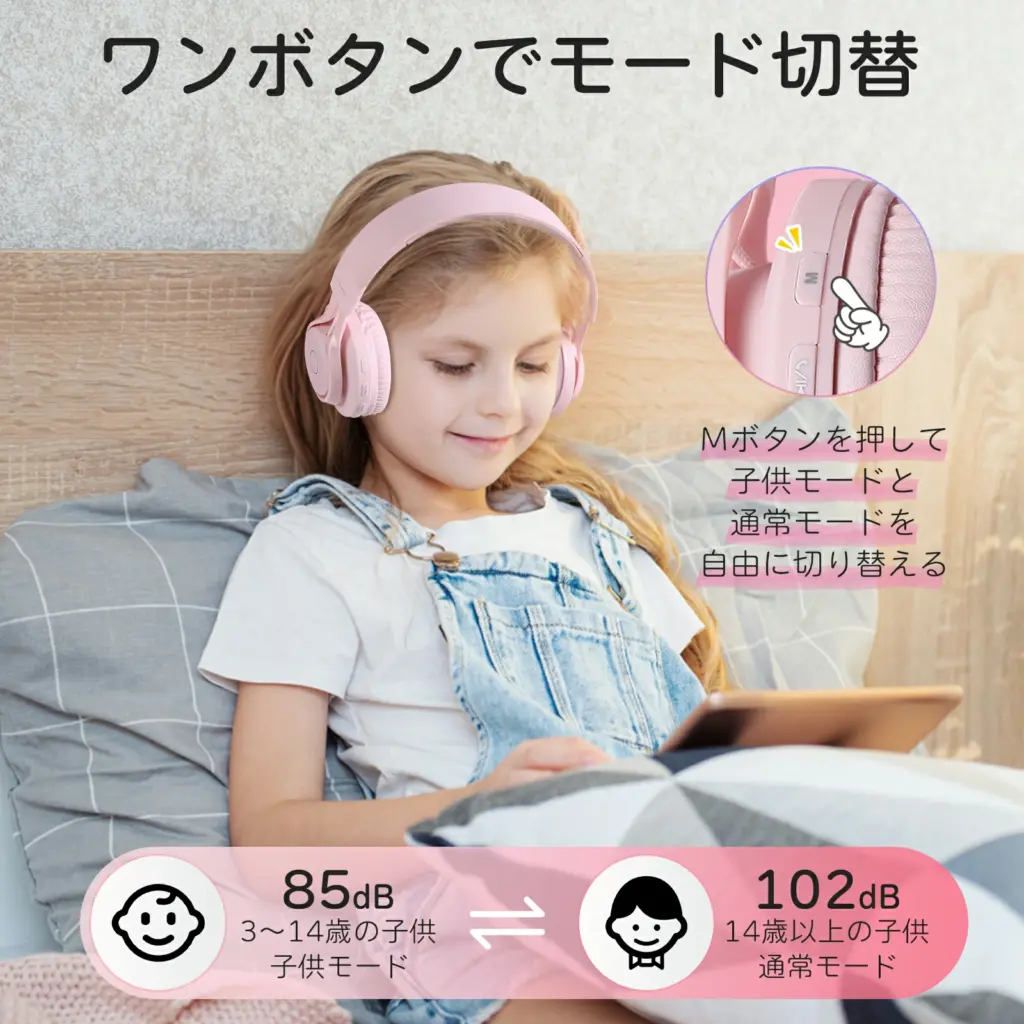 | AGPTEK ヘッドホン | ☆4.61(161件) | 有線タイプ146g、ワイヤレスタイプ164g | ・子ども専用設計 ・Bluetooth対応 ・連続再生:約12時間 ・柔らかいイヤーパッド&ヘッドバンド ・折り畳み式 | 1,980〜3,280円 | 無料 |