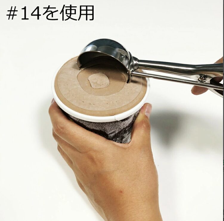 - アイスクリームをすくい、レバーを握るだけできれいに盛り付けられます。