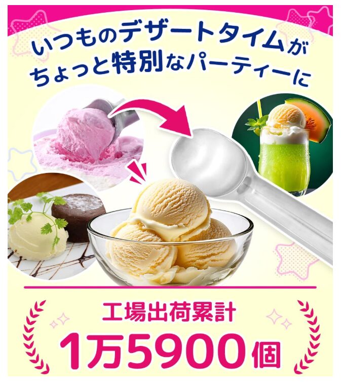 | FamGift アイスクリームディッシャー | ★3.5 | 4.8×17.8cm / 5.7×19cm | スプーンヘッドを押し出せる構造 | 568円~658円 | 無料 |