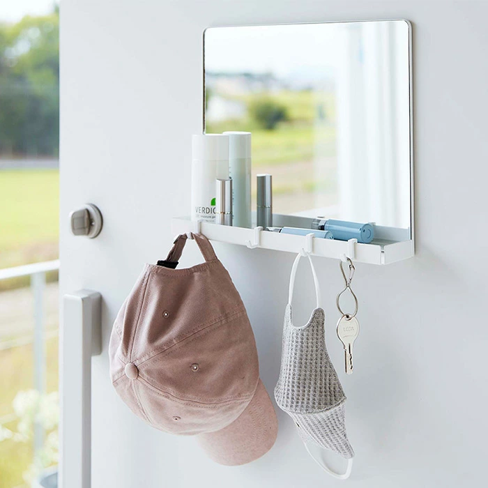 便利な収納ボックスとフック付きの玄関用の鏡!