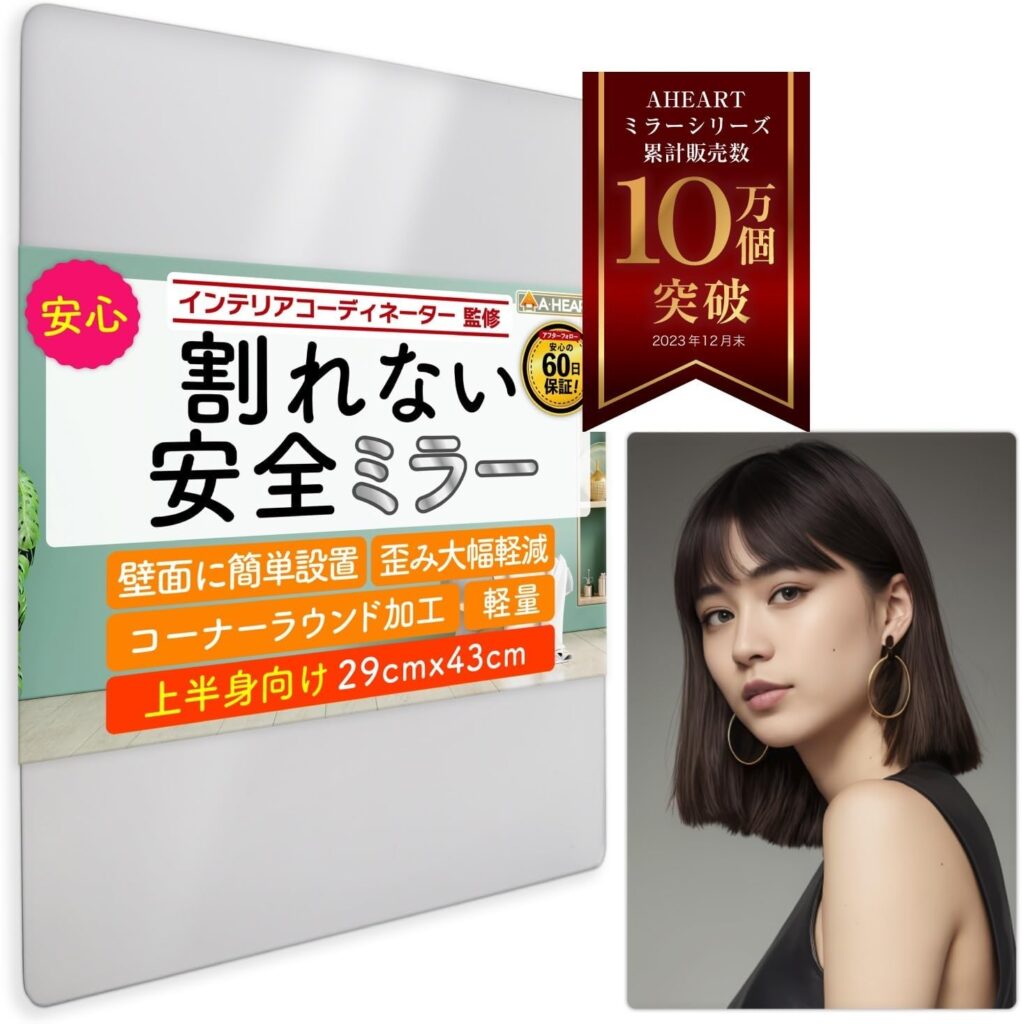 割れにくく安全な鏡にこだわるなら、「AHEART ココミラー 割れない安全ミラー」をおすすめします。
