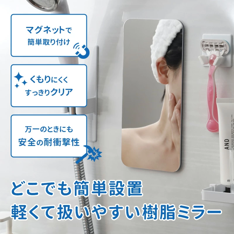 こちらはアクリル樹脂製の鏡で、割れにくいので安心して使えます。