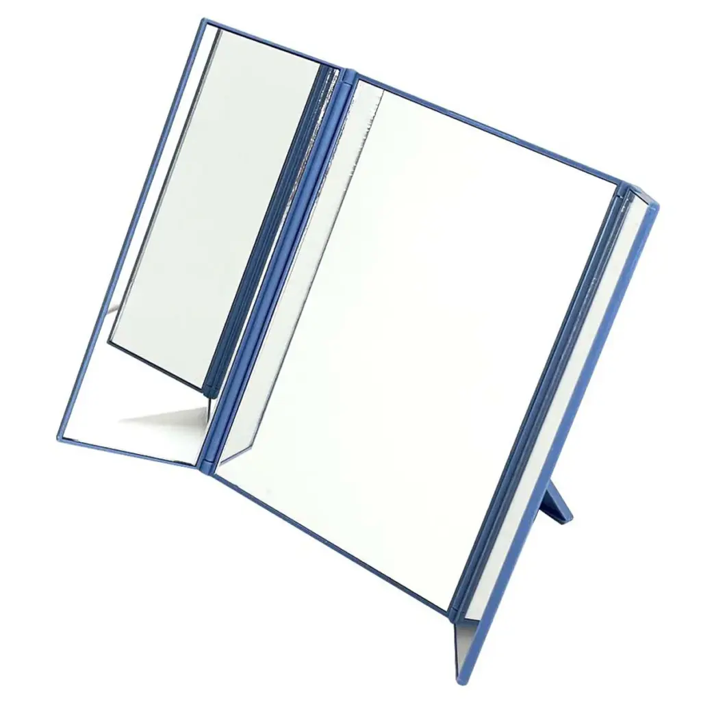 - 左右に開閉でき、側面や後頭部の確認がしやすい三面ミラー。
