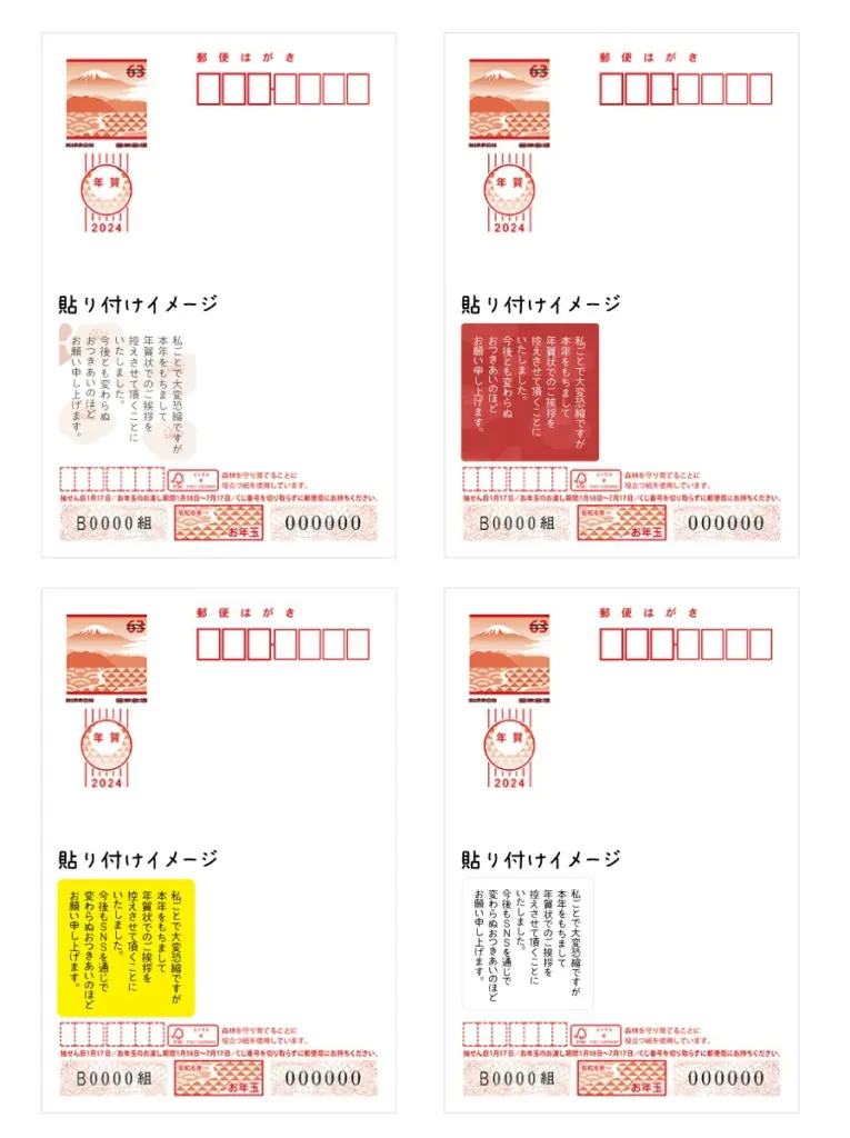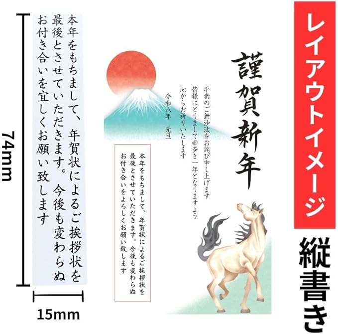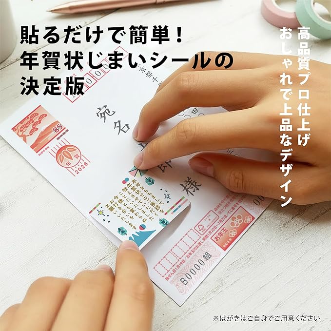 - 年賀はがきにシールを貼るだけで、スムーズに年賀状じまいのご挨拶が完了します。