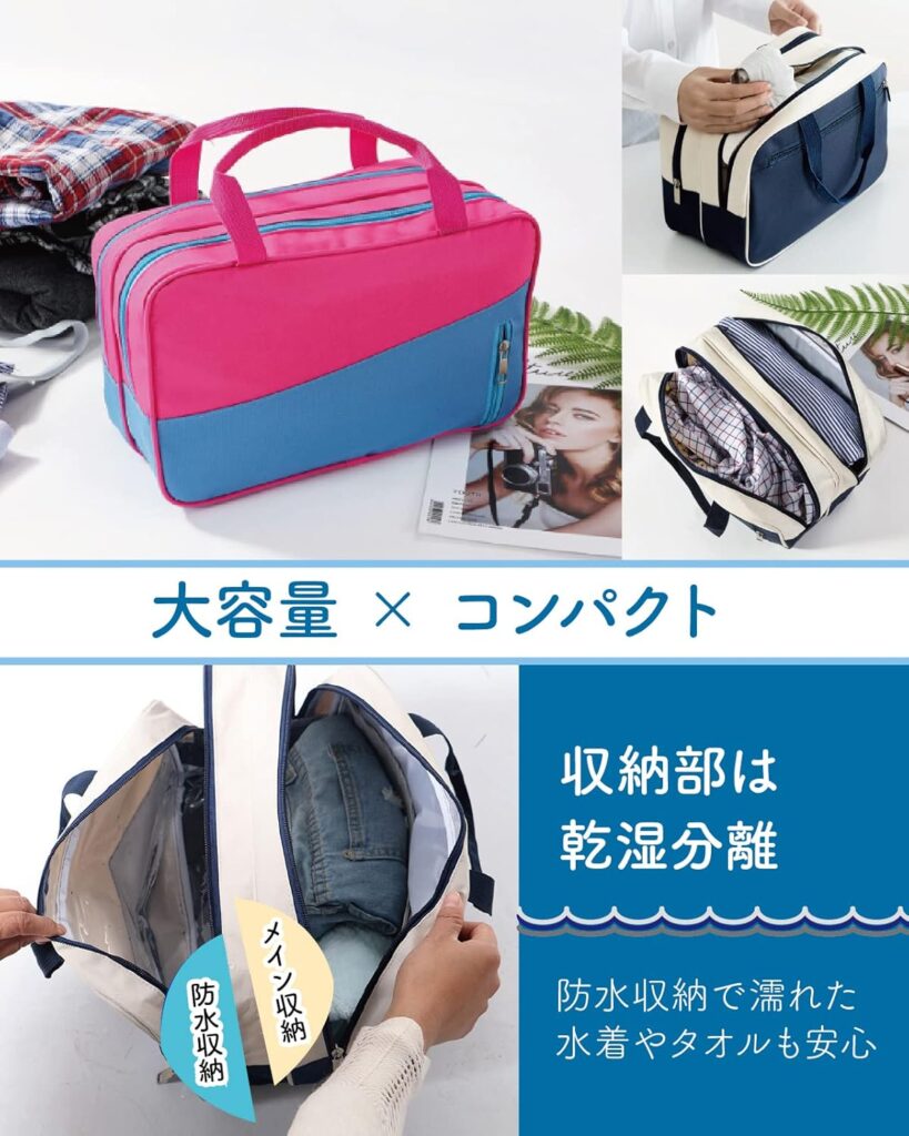 | atRise プールバッグ | ★4.6(12件) | 縦41.5 × 横34.5 | 軽量227g/二層式/汚れた物も分けて収納 | 約1,800円前後 | 無料 |