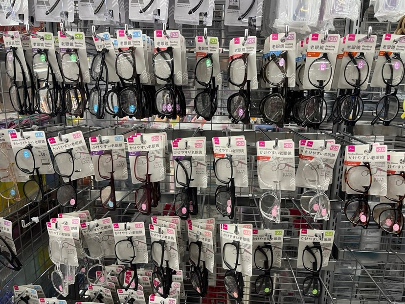 筆者が確認したところ、色違いや形が少し違うものなど数種類の老眼鏡ありました。