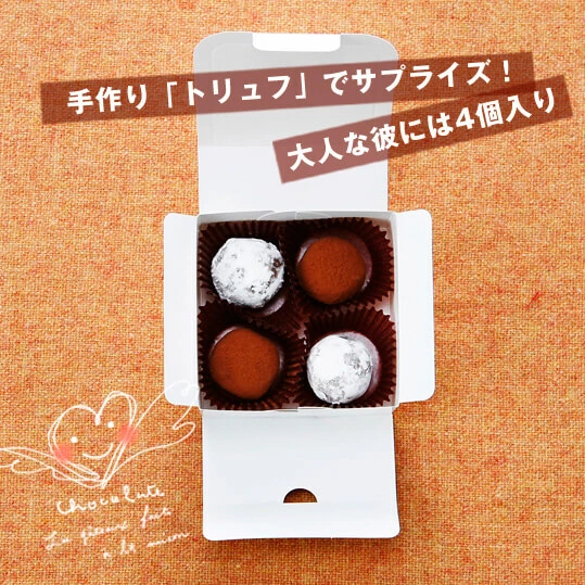 チョコトリュフ4粒分にピッタリの箱にこだわるなら、「モノココロ 白い小箱・4粒用」をおすすめします。