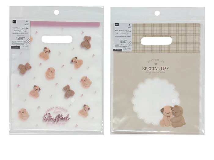 - くま・うさぎ・ひよこがモチーフの袋(表裏同柄)。